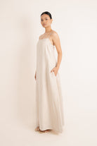 Exuding elegance and sophistication, the Evanna Maxi Dress is expertly crafted from crisp, 100% organic European Flax linen. This stunning maxi dress features a refined square neckline and delicate shoestring straps, complemented by seamless side pockets for a touch of practicality. To ensure an impeccable fit, the adjustable straps allow for customisation, enhancing your comfort. With its luxurious linen fabric, this evening dress provides an elevated finish, making it a perfect choice for any special occasion. Elevate your wardrobe with the timeless allure of the Evanna Maxi Dress.