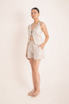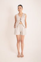 The Archie Relaxed Short is destined to become your go-to summer essential. Designed with a wide-leg silhouette that falls to mid-thigh, these shorts feature a comfortable wide elastic waistband and deep side pockets, seamlessly blending style and functionality. Crafted from crisp, lightweight 100% organic linen, sourced from European Flax, they offer a refined take on a perennial classic. Perfect for effortless wear, the Archie Relaxed Short can be elegantly styled over swimwear or paired with our coordinating tops for a polished ensemble.