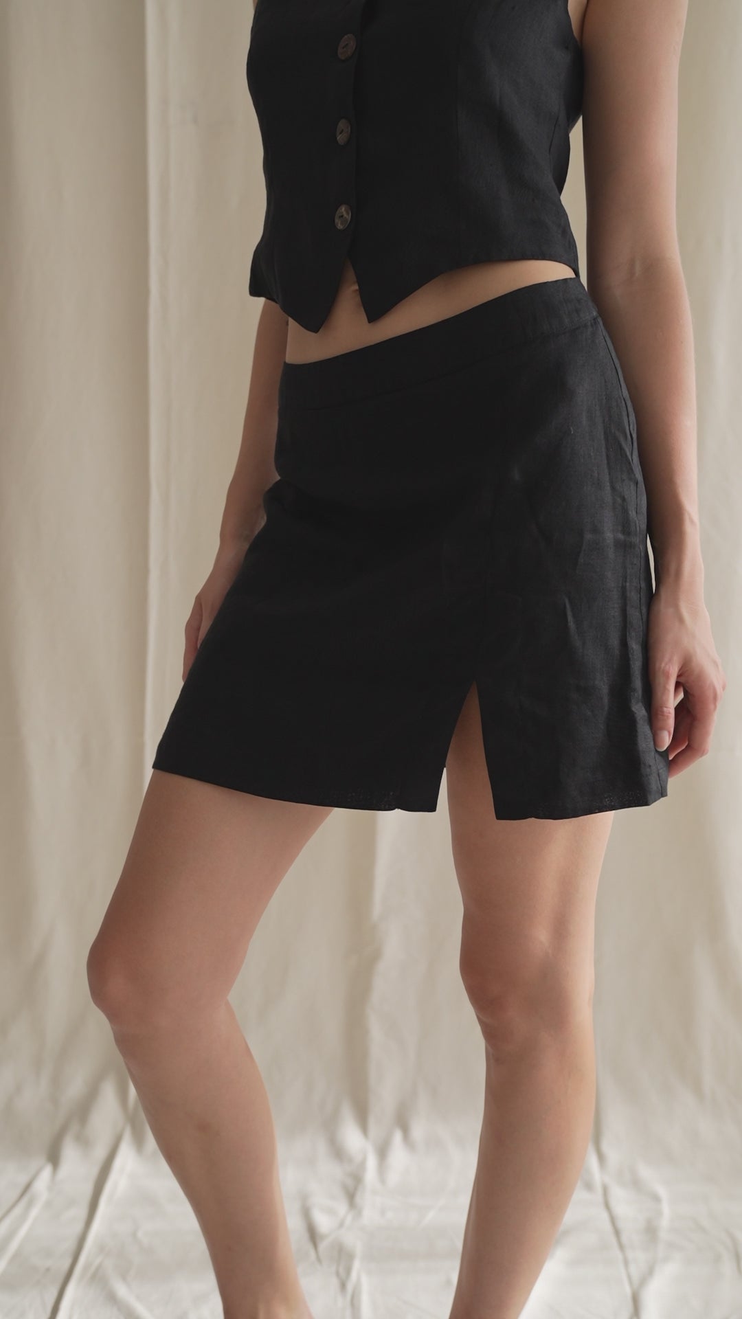 Our Nataly Linen Skirt makes being chic and comfortable simple! The A-line skirt made to fit just above the knee, is slim fitted with slit along one side for optimum breathability and movement. With a centre back zipper securing a high rise finish, Nataly is the ideal skirt to be worn in comfort and versatility with a cropped or longline top.