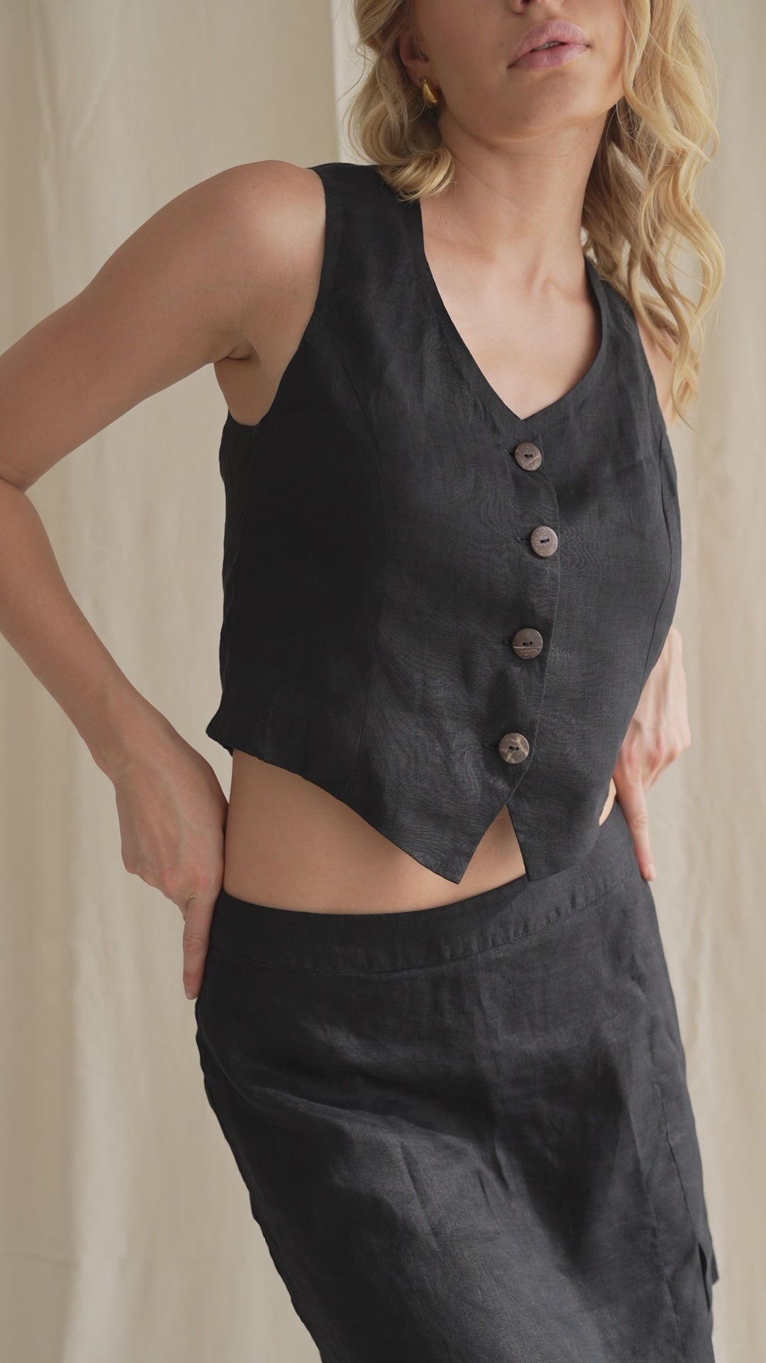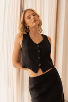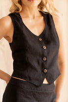 Curating your capsule work wardrobe has never been easier with our Tarna Linen Vest. Fitted with a collared V neckline and a button up front, this sleeveless style is crafted from 100% linen to ensure a comfortable yet structured feel. A clean and effortlessly sophisticated piece that will pair with any outfit, Tarna is a staple piece.